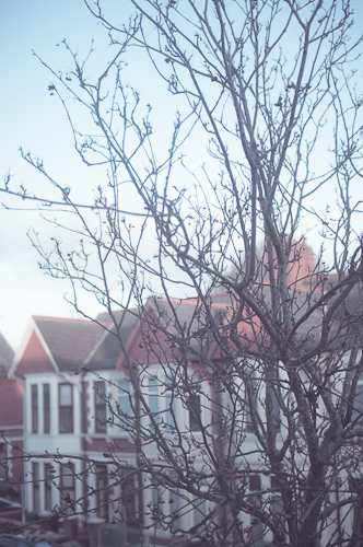 ” Through the bedroom window – the tree, and street beyond.