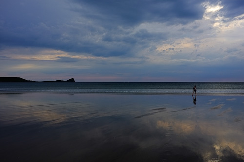 So, a bit of back story. To put this in Context: Saturday 11th August, for once in this dismal excuse for a Summer the sun, had indeed, come out from hiding. It wasn’t the greatest of days with a generally large amount of cloud and lots of wind. Oh, and no surf. So we took to the beach anyway hoping for a nice ‘day out’. Had a lovely walk across the cliff top at Llangennith (Wales), to Rhossili, around the headland and backdown to the Beach. By this time, the sun had started to go down.